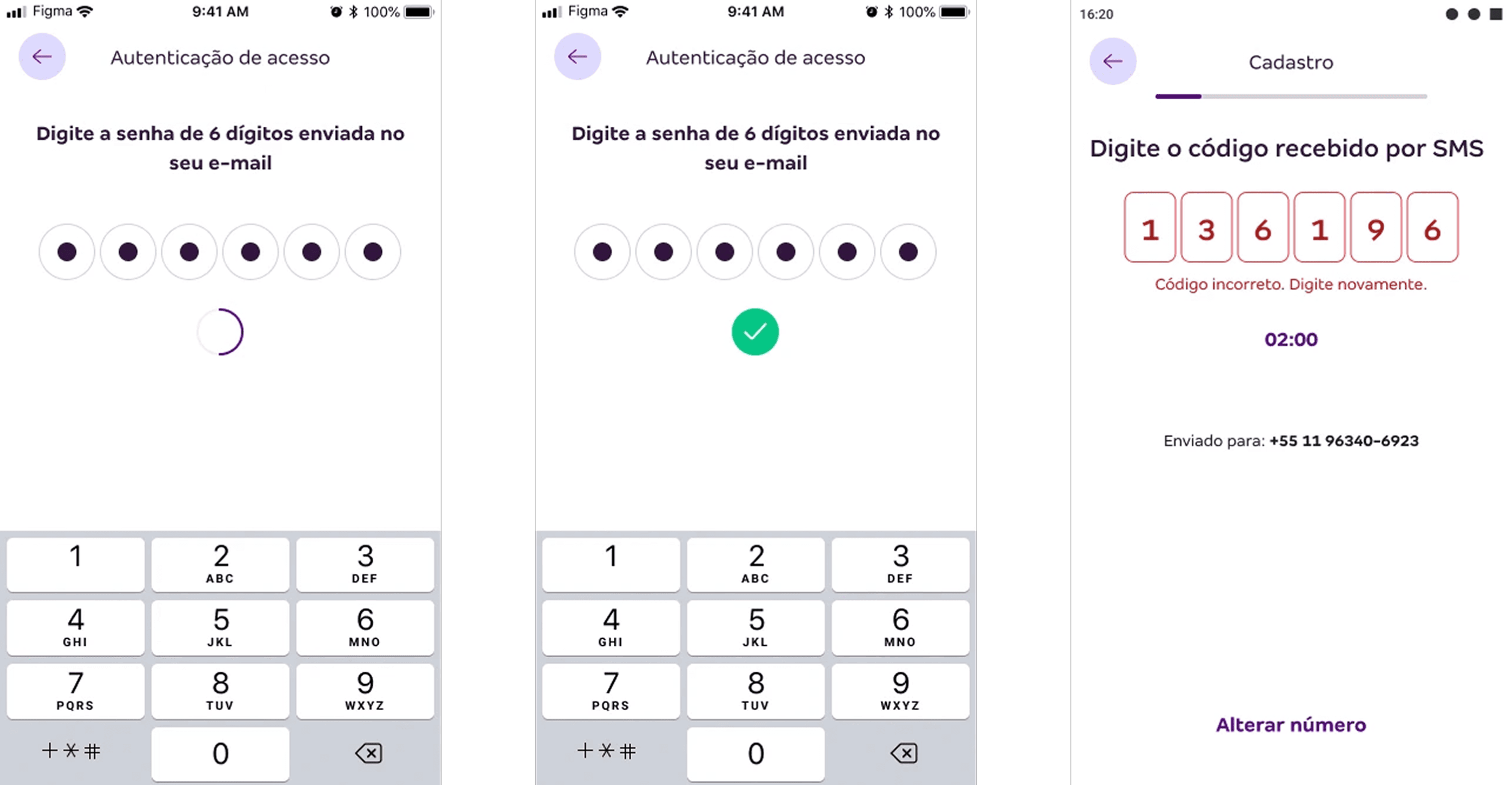 - Positive confirmations morphing loading into green checkmarks for successful inputs