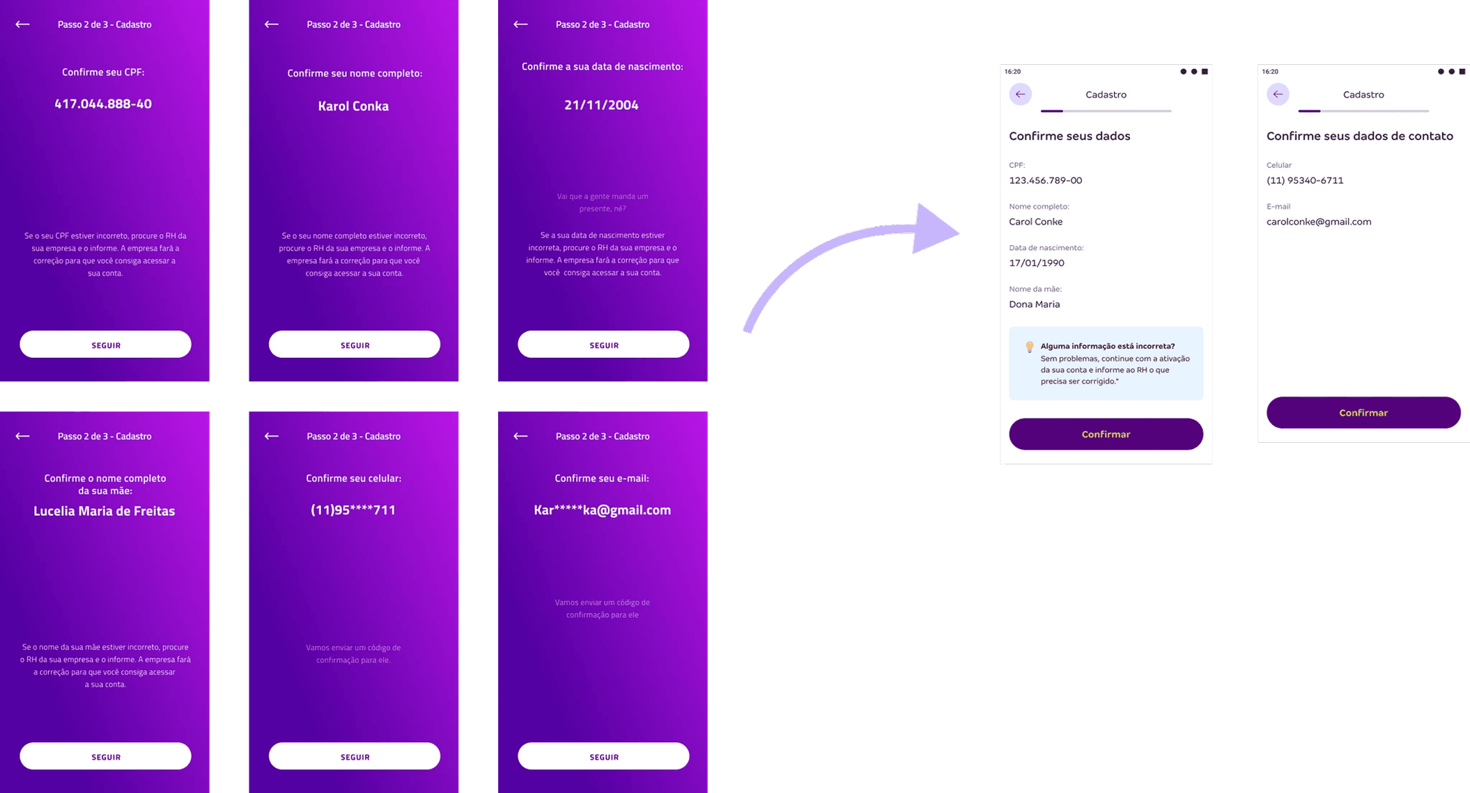 Design System & Rebranding Integration: Applied updated design system across entire onboarding flow, aligning colors, typography, and components with new branding standards. Personal-information checks consolidated into two screens, reducing average clicks from 10 to 4.